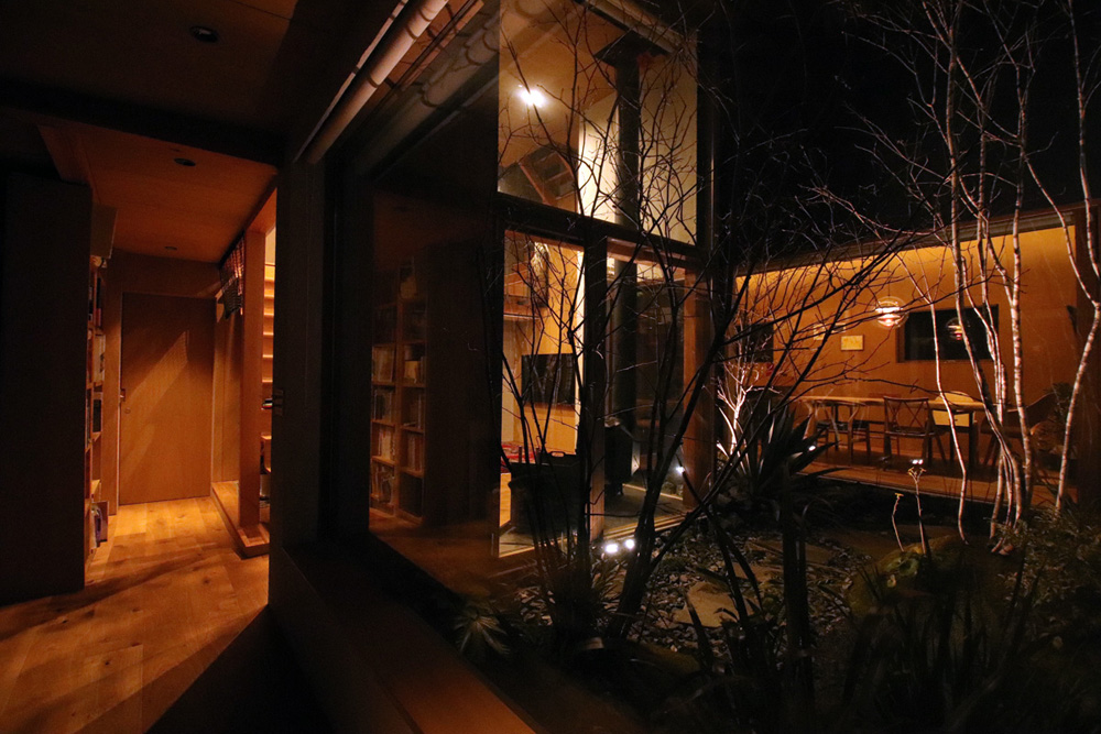 それぞれの居場所は固有の庭の表情を持ちながら、他の居場所とつながる。庭と住空間は互いを織り込みながら全体をつなぎ、外部環境に開いていく。